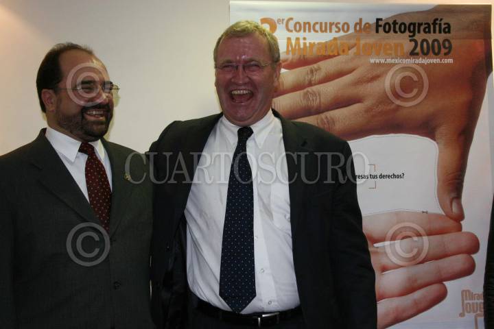 MÉXICO, D.F., 20AGOSTO2009.- Emilio Álvarez Icaza, presidente de la Comisión de Derechos Humanos del Distrito Federal, junto con Arie Hoekman, representante en México de la Organización de las Naciones Unidas, durante la presentación del "3er Concurso de Fotografía, Mirada Joven 2009". FOTO: IVAN MENDEZ/CUARTOSCURO.COM