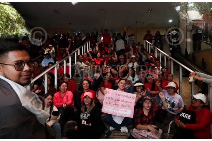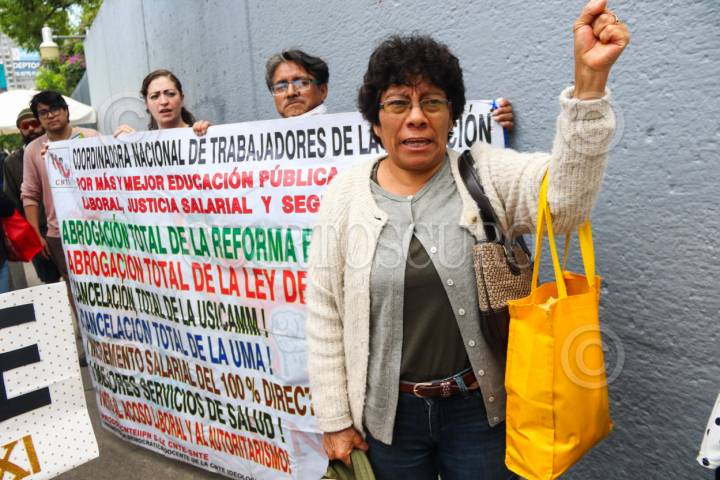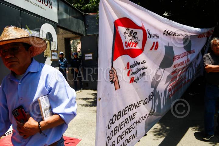 CIUDAD DE MÉXICO, 03JULIO2025.- Maestras y maestros de la Coordinadora Nacional de Trabajores de la Educación (CNTE) se manifestaron en las sede de la Coordinación General de Recursos Humanos de la Secretaría de Educación Pública (SEP) debido al descuento salarial que autoridades implementaron tras el paro nacional. FOTO: GALO CAÑAS/CUARTOSCURO.COM