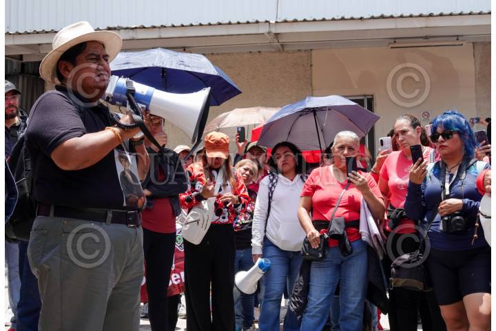 CIUDAD DE MÉXICO, 17JULIO2025.- Pedro Hernández, secretario general de la sección 9 de la Coordinadora Nacional de Trabajadores de la Educación (CNTE) ofreció un mensaje a medios previo a la marcha que partió de la Unidad de Administración y Finanzas de la Autoridad Educativa Federal de la Ciudad de México (AEFCM) rumbo al zócalo capitalino para exigir al gobierno federal la devolución de los días de salario que les descontaron por haber participado en el paro laboral de hace un mes. FOTO: MARIO JASSO/CUARTOSCURO.COM