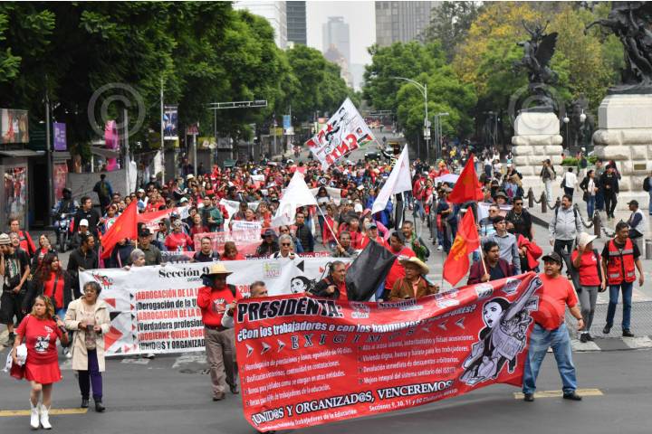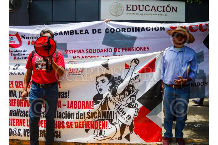 OAXACA DE JUÁREZ, OAXACA, 01 de septiembre de 2025.– Cientos de agremiados de la Sección 22 de la Coordinadora Nacional de Trabajadores de la Educación (CNTE) marcharon en rechazo al primer informe de gobierno de la presidenta de la República, Claudia Sheinbaum Pardo. Los profesores reclamaron el incumplimiento de la derogación de la reforma educativa impulsada por Enrique Peña Nieto, así como la anulación de la Ley del ISSSTE de 2007. FOTO: CAROLINA JIMÉNEZ MARISCAL / CUARTOSCURO.COM