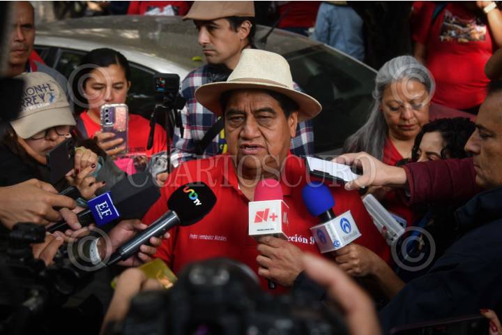 CIUDAD DE MÉXICO, 03JULIO2025.- Pedro Hernández, dirigente de la sección 9 de la Coordinadora Nacional de Trabajores de la Educación (CNTE), ofreció una conferencia tras la toma de la Coordinación General de Recursos Humanos de la Secretaría de Educación Pública (SEP) debido al descuento salarial que autoridades implementaron tras el paro nacional. FOTO: GALO CAÑAS/CUARTOSCURO.COM