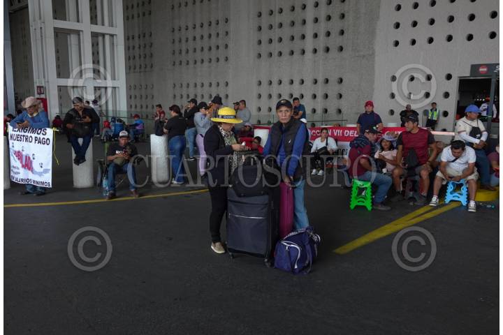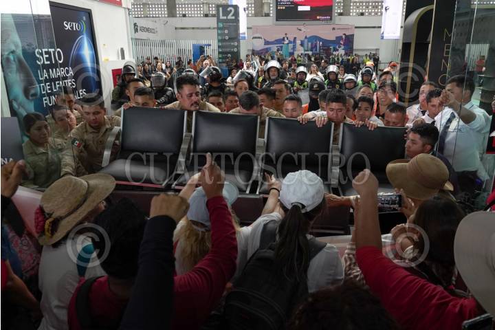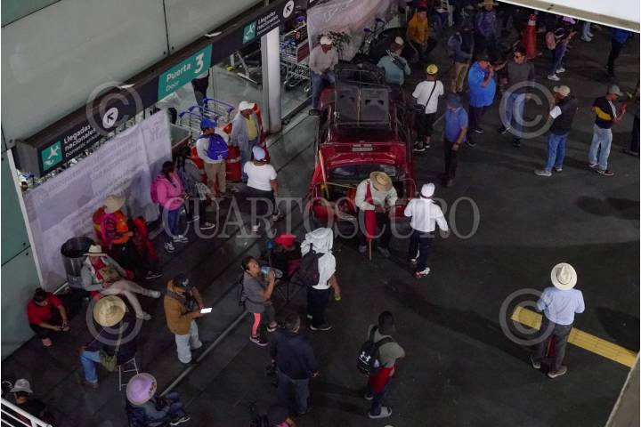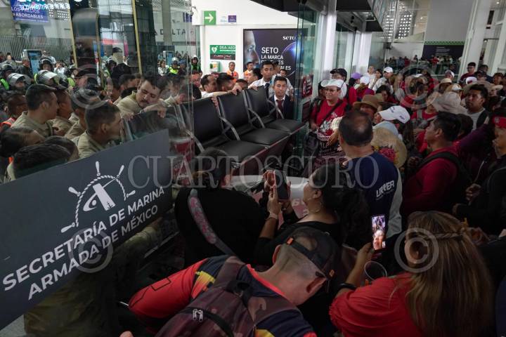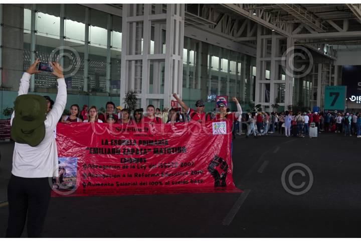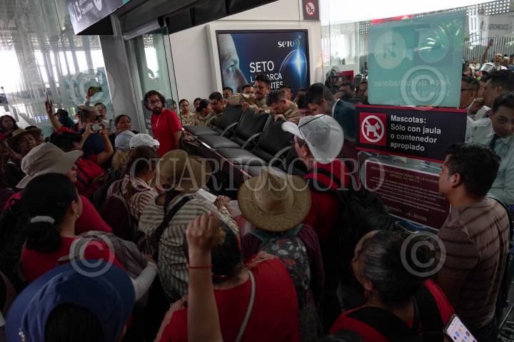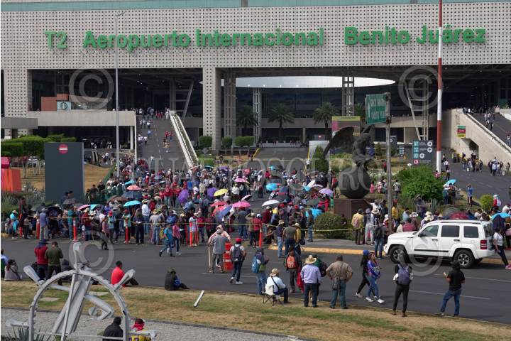 CIUDAD DE MÉXICO 23MAYO2025.- Integrantes de la Coordinadora Nacional de Trabajadores de la Educación, ireumpieron la Terminal 2 del Aeropuerto Internacional de la Ciudad de México. FOTO:ROGELIO MORALES/CUARTOSCURO.COM