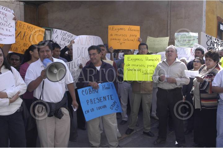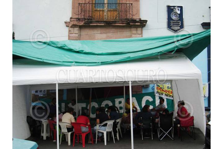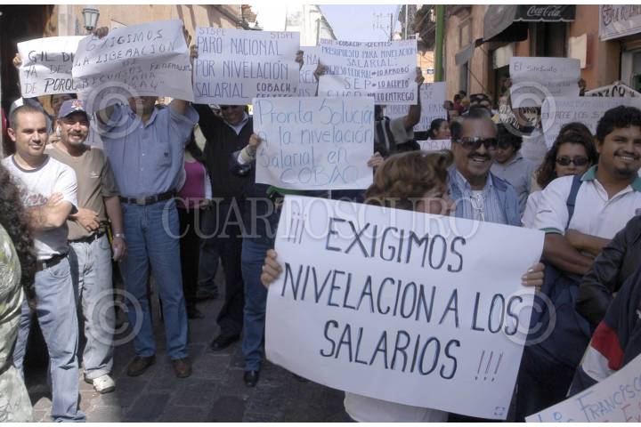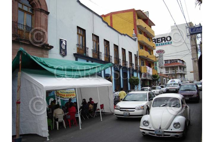QUERÈTARO,QUERÈTARO.-24OCTUBRE2005.- Manifestaciòn afuera de las oficinas del SAT de profesores de los COBACH y CECyTEC, que exigen la aplicaciòn del presupuesto de 341 millones de pesos del "Programa Nacional de Nivelaciones Salariales del Personal". FOTO: Fabiola Salazar Mapy/CUARTOSCURO.COM