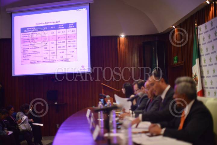 CIUDAD DE MÉXICO, 20ABRIL2016.- Manuel Herrera Vega, presidente de la Confederación de Cámaras Industriales de los Estados Unidos Mexicanos, informó en conferencia que la Concamin disminuye sus estimaciones de crecimiento ya que en el país prevalecen factores que inhiben el crecimiento. Estimaron que para el año 2016, y dadas las condiciones actuales de la economía, la industria nacional solo crecerá solo entre 0.5 y 1.0 por ciento y no 2.0 y 3.0 como ahabía previsto a inicios del año. FOTO: ADOLFO VLADIMIR / CUARTOSCURO.COM