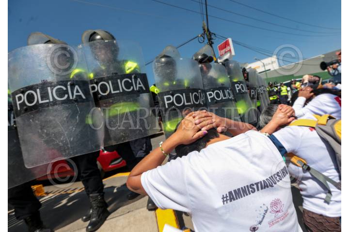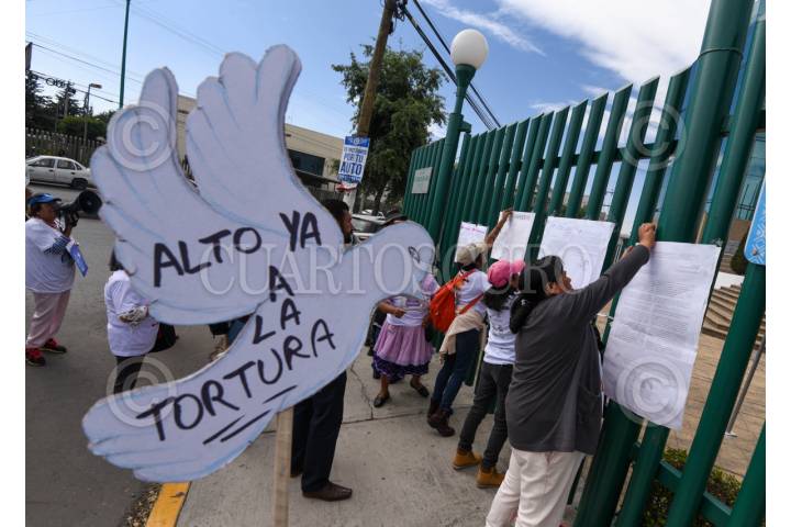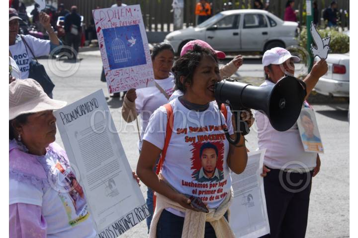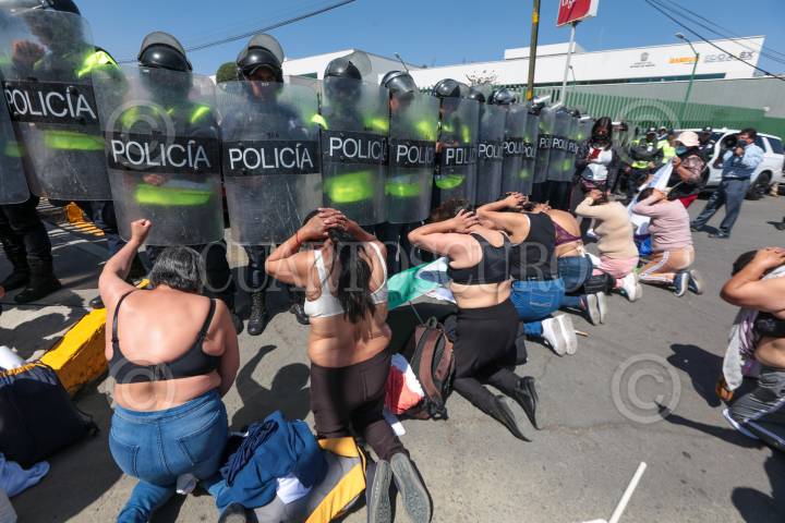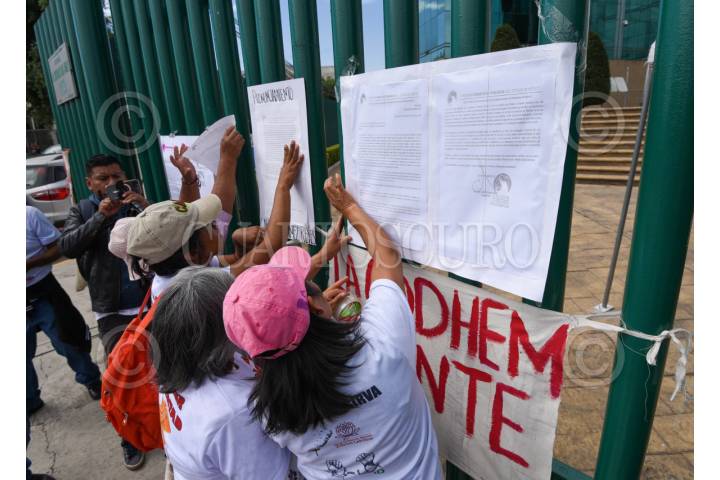 TOLUCA, ESTADO DE MÉXICO, 20MARZO2024.- Mujeres integrantes de Haz Valer Mi Libertad, familiares de personas injustamente presas y que llevan 294 días en plantón en Palacio de Gobierno acudieron a la Comisión de Derechos de Humanos del Estado de México (CODHEM) para manifestarse después de haber declarado la presidenta de CODHEM que los casos por los que luchan en este colectivo y piden la amnistía para sus familiares, han sido revisados y considerados como no procedentes por ser delitos de alto impacto, piden que la justicia no sea selectiva. FOTO: CRISANTA ESPINOSA AGUILAR /CUARTOSCURO.COM