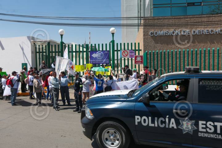 Integrantes de Caravana Mexiquense y Haz Valer Mi Libertad protestaron en la Comisión de Derechos Humanos mientras se celebraba su 30 aniversario.