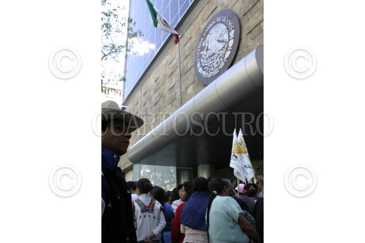 MÉXICO D.F. 31ENERO2007.- Miembros de la Coalición de Organismos Democráticos Urbanos y Campecinos (CODUC), se manifestaron frente a las puertas de la SEDESOL en demanda de respuestas a las peticiones de ayuda al campo. FOTO: ROSA MALDONADO/CUARTOSCURO.COM
