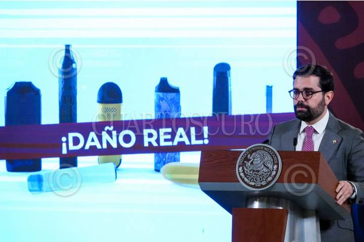 CIUDAD DE MÉXICO, 13FEBRERO2024.- Alejandro Svarch, titular de la Comisión Federal para la Protección contra Riesgos Sanitarios (Cofepris), expone las reforma constitucionales en materia de Salud para el combate a las drogas sintéticas, así como la prohibición de vareadores. Lo anterior, durante la conferencia matutina desde Palacio Nacional en la que se presentó el informe de El Pulso de la Salud. FOTO: GALO CAÑAS/CUARTOSCURO.COM
