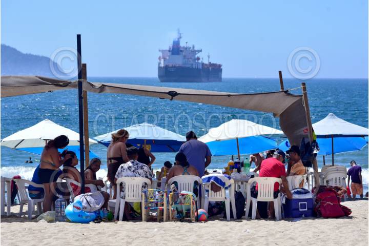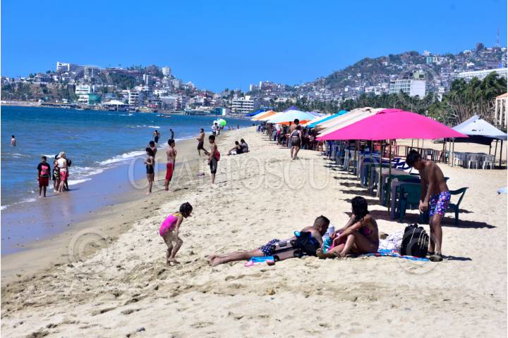 ACAPULCO, GUERRERO, 23MARZO2024.- Turistas comenzaron a llegar a las playas de Acapulco, en el inicio de las vacaciones de Semana Santa, esto a pesar del anuncio de la Comisión Federal para la Protección contra Riesgos Sanitarios (Cofepris) informo en días pasados que dos playas del puerto se encontraban entre la lista de no aptas para el uso recreativo, las playas Carabali y Tlacopanocha, en donde se informó en el muestreo de la calidad de agua, rebasan los 200 enterococos por mililitros. FOTO: CARLOS ALBERTO CARBAJAL/CUARTOSCURO.COM