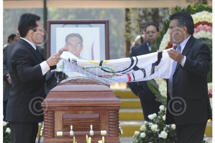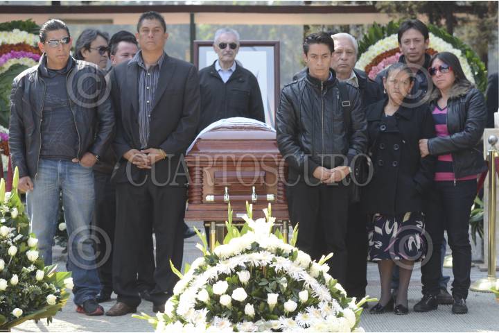 MÉXICO, D.F., 17ENERO2013.- La familia de Noé Hernández montó una guardia en su féretro durante el homenaje que le brindó al comunidad deportiva en el Comité Olímpico Mexicano, el marchita falleció de un paro respiratorio tras estarse recuperando de un ataque con arma de fuego. FOTO: IVÁN MÉNDEZ /CUARTOSCURO.COM