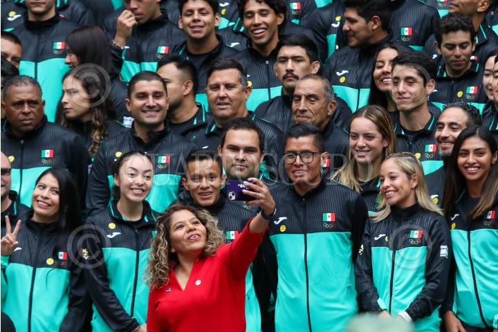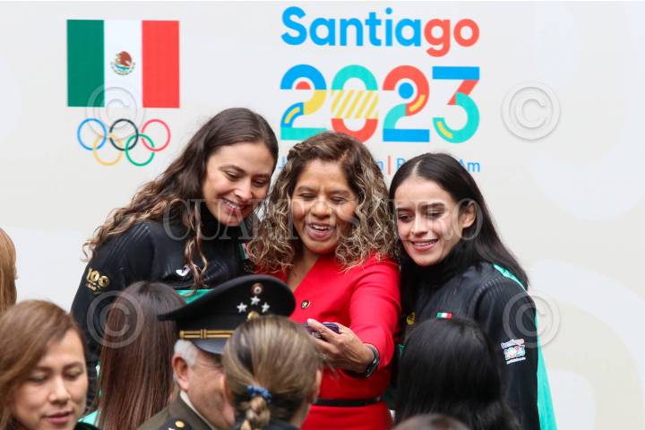 CIUDAD DE MÉXICO, 16OCTUBRE2023.- Mary Jose Alcalá directora del Comité Olímpico Mexicano convive con los deportistas que participarán en los Juegos Panamericanos de Santiago de Chile, en Palacio Nacional. FOTO: MOISÉS PABLO/CUARTOSCURO.COM