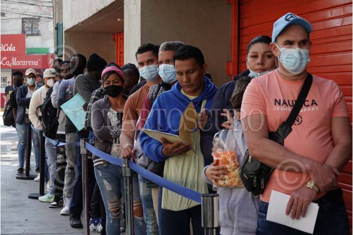 NAUCALPAN E MÉXICO, 24ENERO2025.- Con filas interminables, listas improvisadas sobre hojas sueltas y folders es como migrantes intentan organizarse para que autoridades de la Comisión Mexicana de Ayuda a Refugiados (Comar) les brinden el apoyo y orientación para regularizar su estadía en nuestro país. Sin embargo al ser tanta la demanda de personas, la COMAR del Municipio de Naucalpan colapso, informando que la recepción de migrantes se reanudaría hasta el próximo lunes 27 de enero. FOTO: ROGELIO MORALES /CUARTOSCURO.COM