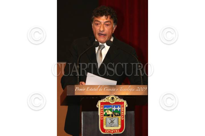 TOLUCA, ESTADO DE MÉXICO, 11ENERO2010.- Elias Micha, director General del COMECYT, durante la participación en la entrega de Premio Estatal de Ciencia y Tecnología 2009 que les fueron otorgados a siete investigadores del Estado de México en las categorias; Agropecuaria y Bíotecnología, Ciencias de la Salud, Ciencias Naturales y Exactas, Ingenieria y Tecnologias y Ciencias Sociales y Humanidades, llevado acabo en el Palacio de Gobierno de la entidad. FOTO: SAÚL LÓPEZ/CUARTOSCURO.COM