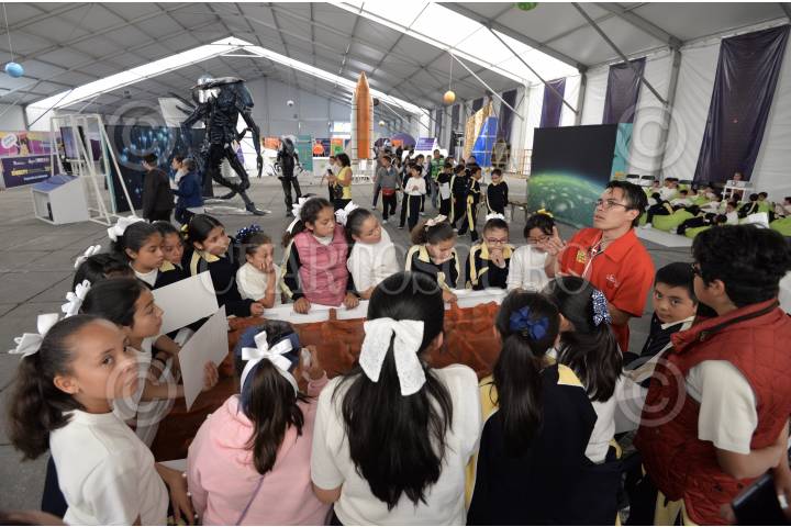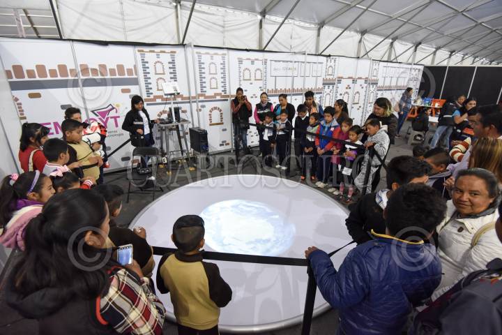TOLUCA, ESTADO DE MÉXICO, 24SEPTIEMBRE2018.- Estudiantes de primaria, secundaria y preparatoria asisten al Espacio Mexiquense de Ciencia y Tecnología 2018, en esta ocasión con el tema “Expande tú universo” en donde podrán conocer un poco más del universo y también los proyectos de estudiantes mexiquenses como parte de las actividades del COMECyT en la Plaza de los Mártires. FOTO: ARTEMIO GUERRA BAZ /CUARTOSCURO.COM
