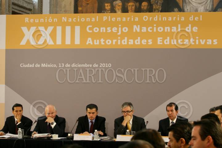 MÉXICO D.F., 13DICIEMBRE2010.- Alonso Lujambio, titular de la SEP, encabezo la Inauguración de la XXIII Reunión Nacional Plenaria Ordinaria del Consejo Nacional de Autoridades Educativas (CONAEDU), esto en las instalaciones de la secretaria. FOTO: GUILLERMO PEREA/CUARTOSCURO.COM