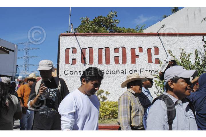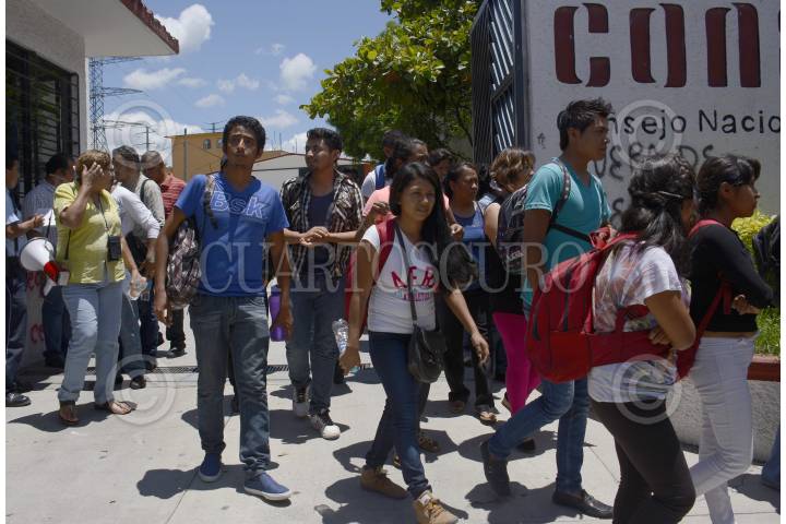 OAXACA, OAXACA, 29OCTUBRE2012.- Bloqueo en la Calzada Madero que mantenían Materialistas de la Confederación de Trabajadores de México (CTM) y de la Confederación Nacional de la Productividad (CNP). Los manifestantes exigían que la empresa que contrató la Comisión Nacional de Fomento Educativo (Conafe) les pague el adeudo que tiene por su trabajo. FOTO: ARTURO PÉREZ ALFONSO /CUARTOSCURO.COM