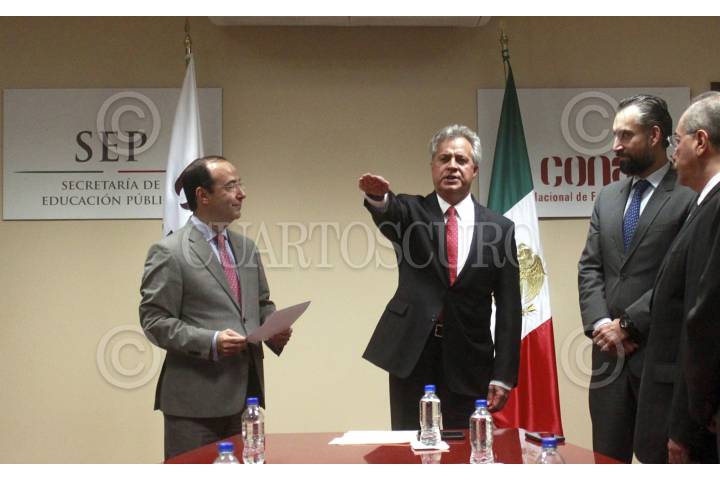 CIUDAD DE MÉXICO, 25JULIO2016.- Simón Iván Villar Martínez fue como director general del Conafe, por instrucciones del titular de la SEP, Aurelio Nuño. Javier Treviño, subsecretario de Educación Básica de la SEP le tomo protesta al cargo. FOTO: SEP/CUARTOSCURO.COM