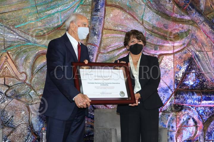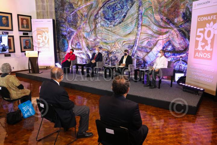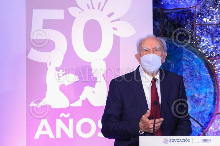 Delfina Gómez, titular de la SEP, y Gabriel Cámara y Cervera, director del Conafe, celebraron los 50 años del Consejo Nacional de Fomento Educativo.
