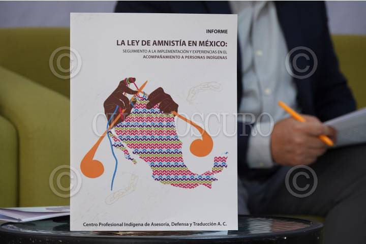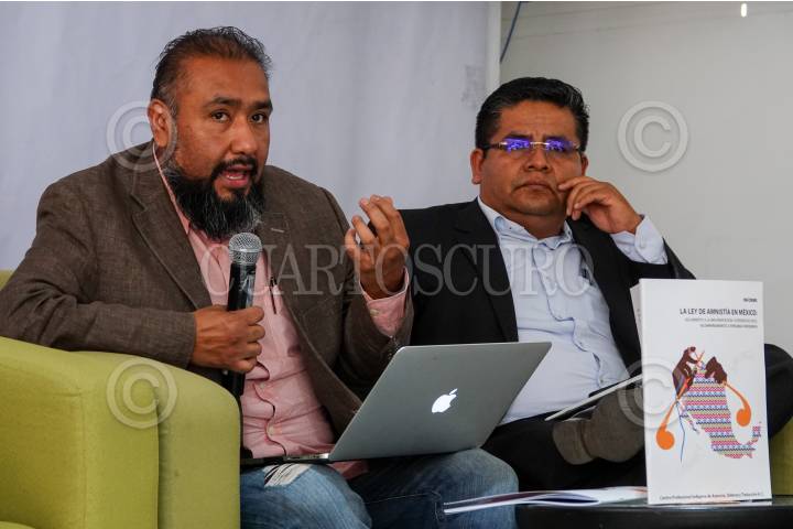 Violeta Hernández Andrés; Olimpia Martínez Ramírez; Javier Carrasco Solís; Carlos Aguilar Astorga; Gerardo Martínez Ortega durante la presentación del informe “La Ley de Amnistía en México" en las inmediaciones de la COPRED.