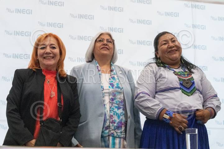 Rosario Piedra Ibarra (CNDH); Graciela Márquez Colín (INEGI), y Claudia Olivia Morales Reza (Conapred), durante la presentación de la Encuesta Nacional sobre la Discriminación ENADIS 2022 realizado por el INEGI.