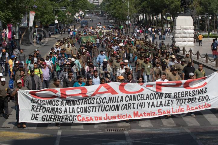 CIUDAD DE MÉXICO, 20MAYO2019.- Integrantes de la Coordinadora Regional de Autoridades Comunitarias-Policía Comunitaria (CRAC-PC) de Guerrero marcharon del Caballito de Reforma a la Suprema Corte de Justicia de la Nación para exigirle al máximo tribunal un acción de inconstitucionalidad al artículo 14 de la Constitución local que elimina la figura de Policía Comunitaria o Rural, la cual fue aprobada el año pasado, ellos señalan que esta reforma atenta contra la autodeterminación de los pueblos indígenas en materia de organización de sus comunidades, dicha ley fue impulsada por el actual gobernador guerrense Héctor Astudillo. FOTO: MOISÉS PABLO /CUARTOSCURO.COM