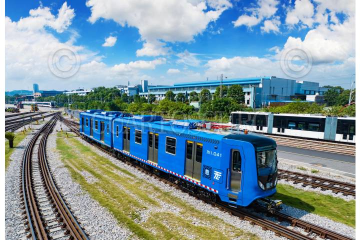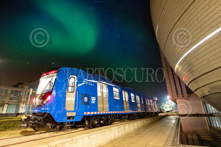 CIUDAD DE MÉXICO, 09SEPTIEMBRE2023.- Aspectos de la salida de las primeras unidades del Tren Ligero ensambladas en los talleres de China de la empresa CRRC Zhuzhou Locomotive. FOTO: GOBIERNO CDMX/CUARTOSCURO.COM