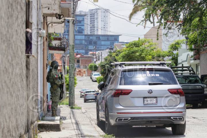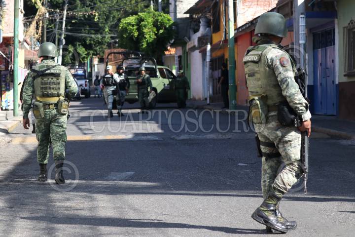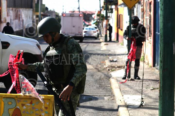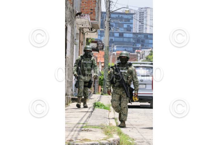 CUERNAVACA, MORELOS, 29MAYO2025.- Policía de Morelos y elementos del Ejército resguardan una casa ubicada en la calle Tulipán Holandés, en la colonia Tulipanes donde presuntamente fue detenido un hombre que estaría relacionado con el feminicidio de la joven Sarah Olivia Rendon Parra, hija de la abogada y directora del Centro de Justicia para la Mujer de la Fiscalía del Estado, Sara Olivia Parra Téllez. El pasado martes después de las 21:00 horas la víctima manejaba su vehículo en compañía de una mujer de la tercera edad, cuando el cruce de las calles 5 de mayo y Domingo Diez de la colonia El Empleado fue atacada a balazos por cuatro hombres encapuchados, su acompañante resulto herida y trasladada al hospital para su atención. Hasta el momento las autoridades responsables no han emitido información oficial sobre este cateo. FOTO: MARGARITO PÉREZ RETANA/CUARTOSCURO.COM