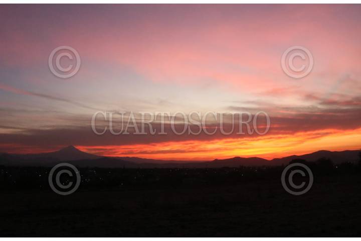 CUERNAVACA, MORELOS, 28ENERO2025.- El amanecer de este día ofreció una espectacular vista de los volcanes Popocatépetl e Iztaccíhuatl, imagen tomada desde el poniente de la capital de Morelos. FOTO: MARGARITO PÉREZ RETANA/CUARTOSCURO.COM