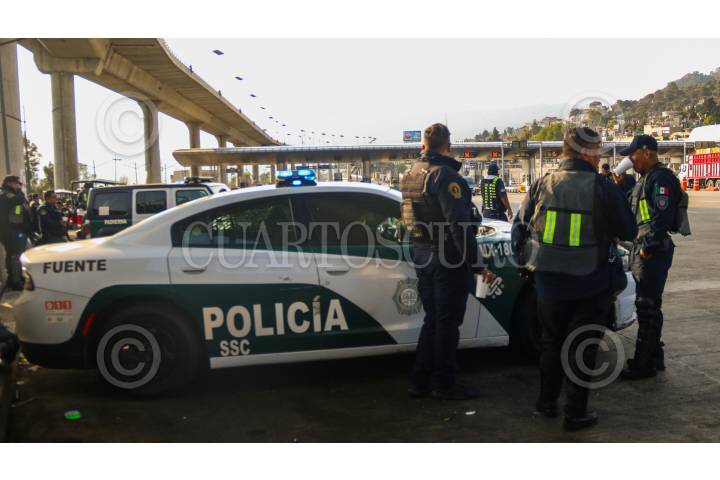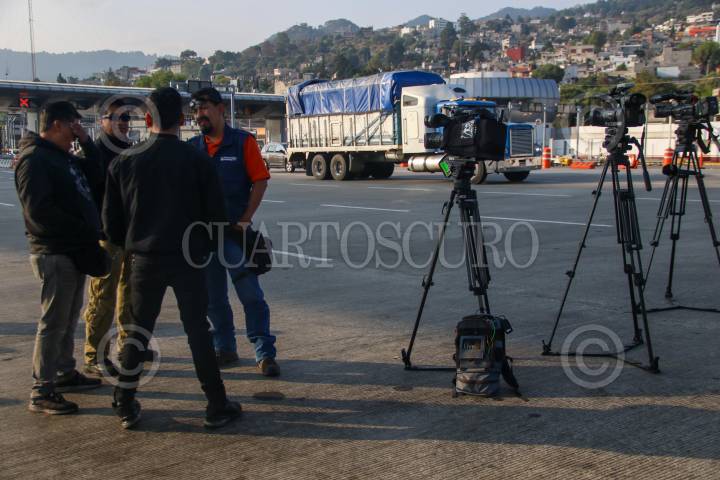 CIUDAD DE MÉXICO. 17FEBRERO2025.- Policías capitalinos y medios de comunicación se dieron cita desde temprana hora, en la caseta a Cuernavaca y la afluencia de peaje se encuentra sin manifestación que anunciaron transportistas. FOTO: VICTORIA VALTIERRA/CUARTOSCURO.COM