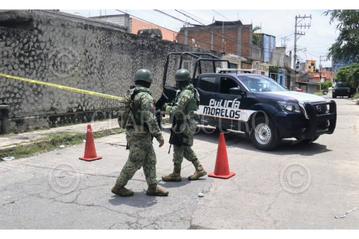 CUERNAVACA, MORELOS, 23ENERO2025.- Dos hombres fueron asesinados durante la madrugada de este día en la zona metropolitana del estado. El primer reporte lo recibió la policía del municipio de Cuernavaca, en la entrada del jardín de niños Margarita Maza de Juárez, ubicado en la calle Rubén Darío de la colonia Carolina, fue ejecutado un hombre por disparos de arma de fuego. El hecho ocurrió después de la una de la mañana y el cadáver fue levantado por el servicio medico forense de la Fiscalía de Justicia de Morelos hasta las diez de la mañana. El otro homicidio se registro en la calle 5 de febrero de la colonia Centro en el municipio de Jiutepec, vecinos de la zona realizaron en hallazgo del cadáver de un hombre envuelto en una lona. Los homicidios motivaron la movilización de policías, elementos de la Guardia Nacional y Ejercito, quienes realizaron el acordonamiento de las escenas del crimen e implementaron un operativo de búsqueda de los responsables sin obtener resultados positivos. FOTO: MARGARITO PÉREZ RETANA/CUARTOSCURO.COM