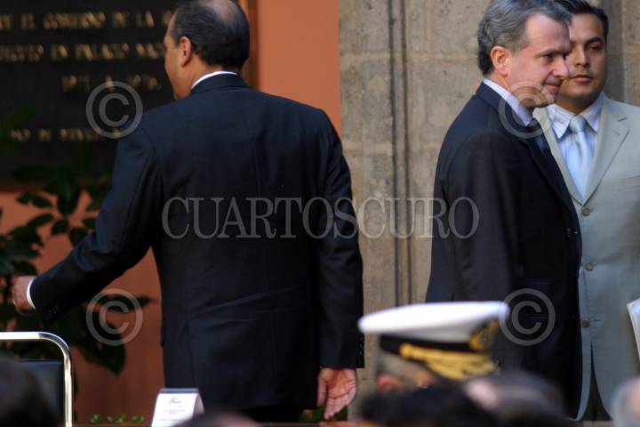 MEXICO, D.F. 21MARZO2005.- Santiago Creel, secretario de Gobernación al término de la ceremonia del CXCIX aniversario del natalicio del Benemèrito de las Amèricas, Benito Juárez, celebrada en el Palacio Nacional. FOTO: Sandra Perdomo/CUARTOSCURO.COM