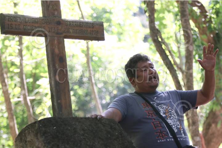 TECPAN DE GALEANA, GUERRERO, 01DICIEMBRE2024.- Familiares, compañeros de lucha y decenas de simpatizantes de Lucio Cabañas, maestro, guerrillero, y líder del Brigada Campesina de Ajusticiamiento del Partido de los Pobres , acudieron al sitio donde murió en combate el 2 de diciembre de 1974. Realizaron un acto de memoria en la cañada del Otatal, dónde llevaron una ofrenda floral para recordar la lucha del profesor que se remontó a la sierra cafetalera de Atoyac de Álvarez luego de la represión que realizó el gobierno de Guerrero el 18 de mayo de 1967, dónde murieron cinco personas, incluida una mujer embarazada y dos agentes policiacos. En medio de vivas a los guerrilleros caídos en combate y palabras muy emotivas se recordó la muerte de Lucio Cabañas, Lino Rosas Pérez y Esteban Mesino Martinez y la detención del adolescente Marcelo Serafín Juárez, quién desde entonces fue desaparecido por el Estado. En la imagen, Pablo Cabañas, hermano del guerrillero caído en combate. FOTO: MARGARITO PÉREZ RETANA/CUARTOSCURO.COM