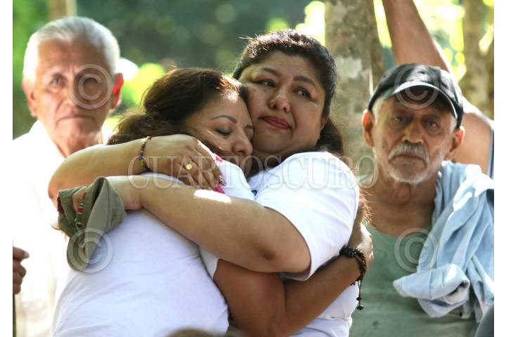 TECPAN DE GALEANA, GUERRERO, 01DICIEMBRE2024.- Familiares, compañeros de lucha y decenas de simpatizantes de Lucio Cabañas, maestro, guerrillero, y líder del Brigada Campesina de Ajusticiamiento del Partido de los Pobres , acudieron al sitio donde murió en combate el 2 de diciembre de 1974. Realizaron un acto de memoria en la cañada del Otatal, dónde llevaron una ofrenda floral para recordar la lucha del profesor que se remontó a la sierra cafetalera de Atoyac de Álvarez luego de la represión que realizó el gobierno de Guerrero el 18 de mayo de 1967, dónde murieron cinco personas, incluida una mujer embarazada y dos agentes policiacos. En medio de vivas a los guerrilleros caídos en combate y palabras muy emotivas se recordó la muerte de Lucio Cabañas, Lino Rosas Pérez y Esteban Mesino Martinez y la detención del adolescente Marcelo Serafín Juárez, quién desde entonces fue desaparecido por el Estado. En la imagen, Micaela Cabañas Ayala y Margarita Serafín , hija de Lucio Cabañas y hermana de Marcelo Serafín. FOTO: MARGARITO PÉREZ RETANA/CUARTOSCURO.COM