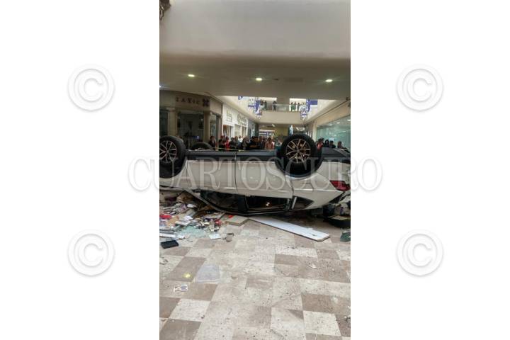 CIUDAD DE MÉXICO, 24MAYO2025.- Un automóvil conducido por una mujer de 61 años cayó desde un tercer nivel del estacionamiento al interior de la Plaza Lilas, en la alcaldía Miguel Hidalgo. La mujer fue trasladada a un hospital privado para su atención. FOTO: ESPECIAL/CUARTOSCURO.COM