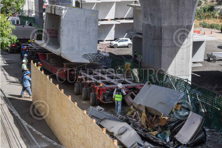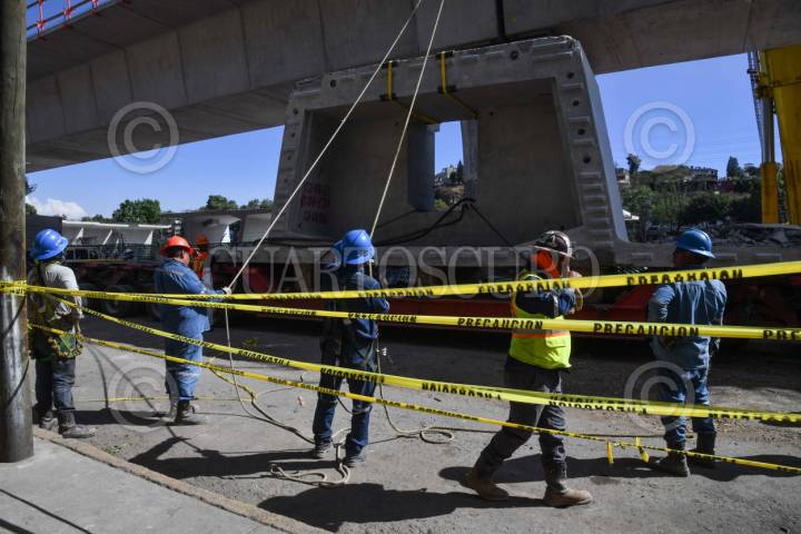 CIUDAD DE MÉXICO, 24ENERO2024.- Fue retirada retirar la dovela de concreto del Tren Interurbano México-Toluca, que cayó el pasado 16 de enero mientras se realizaban maniobras sobre la calzada Minas de Arena de la colonia Acueducto. FOTO: MARIO JASSO/CUARTOSCURO.COM