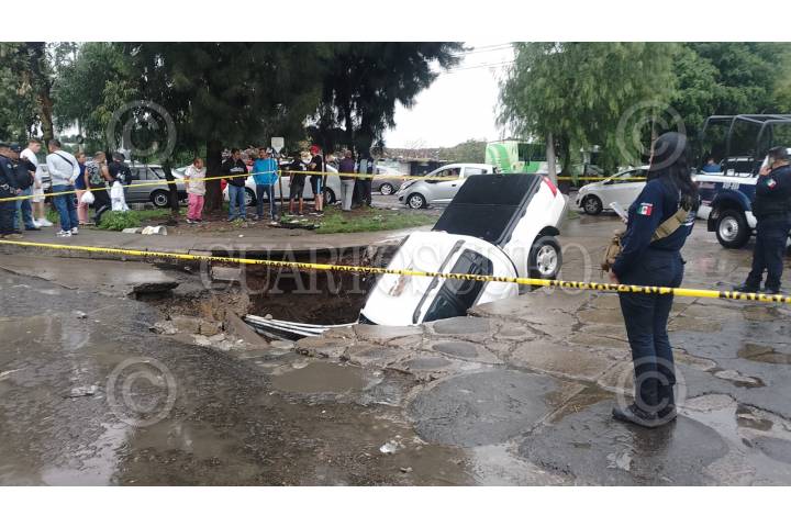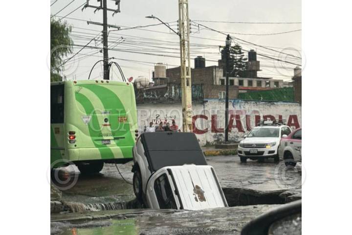 ECATEPEC, ESTADO DE MÉXICO, 16AGOSTO2024.- Una camioneta cayó en un socavón que se formó por las fuertes lluvias registradas en los últimos días en la entidad. FOTO: ESPECIAL/CUARTOSCURO.COM