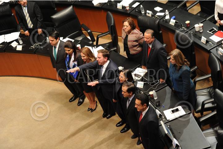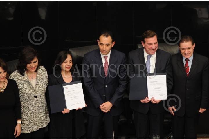 MÉXICO, D.F., 10DICIEMBRE2015.- Dos de los ministros electos durante la sesión ordinaria en el Senado, tomaron protesta frente al pleno, Norma Lucia Piña y Javier Laines. FOTO: ISABEL MATEOS /CUARTOSCURO.COM