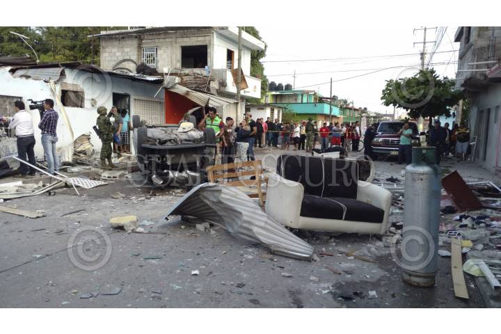 NACAJUCA, TABASCO, 10ENERO2017.- Una fuerte explosión por gas se registro dentro de una carnicería en la calle Cañaveral del fraccionamiento Bosques de Saloya. Autoridades de Protección Civil indican que se registraron tres heridos de gravedad y cuantiosos daños materiales. FOTO: MARCO POLO GUZMÁN HERNÁNDEZ /CUARTOSCURO.COM