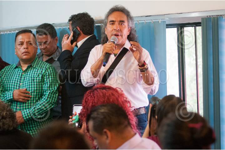 CIUDAD DE MÉXICO., 22AGOSTO2017.- Humberto Pabón, líder y fundador del grupo Cañaveral, durante la conferencia que se organizó con varios integrantes de grupos como Los Ángeles Azules, Los Ángeles Negros, Los Caminantes, Cañaveral, La Sonora Dinamita, Acapulco Tropical, Los Dandys, Los Solitarios, Los Chicanos, Los Pasteles Verdes, Los Freddys, Indio, Los Apson, para anunciar que tomarán medidas contra el Instituto Nacional del Derecho de Autor (INDAUTOR) y sus normas que han violado sus derechos de autor. FOTO: DIEGO SIMÓN SÁNCHEZ /CUATOSCURO.COM