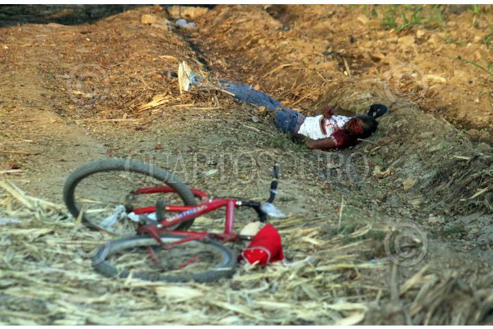 YAUTEPEC, MORELOS 12ENERO2019.- Al amanecer de este día se reportó el hallazgo de un hombre sin vida en un camino de terracería que conduce a los cañaverales, a lado de la carretera federal Cuernavaca-Cuautla. El hombre presentaba una lesión en el rostro de arma blanca (machete). La víctima vestía playera blanca, pantalón de mezclilla azul y tenis blancos, de aproximadamente 55 años, la bicicleta en que se trasladaba quedo cerca del cadáver. FOTO: MARGARITO PÉREZ RETANA /CUARTOSCURO.COM