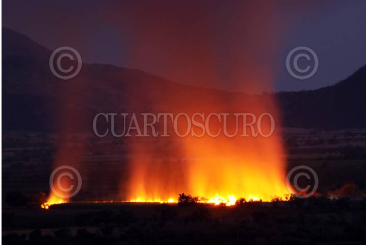 Un cañaveral es incendiado al amanecer en el municipio de Tepalcingo.