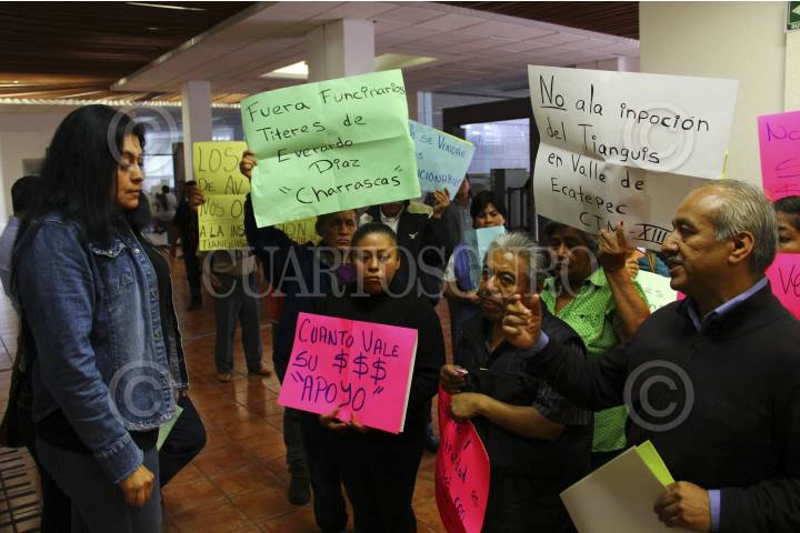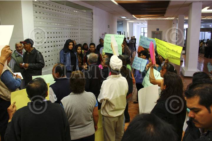 ECATEPEC, ESTADO DE MÉXICO, 25JUNIO2014.- A silbatazos y gritos en contra de funcionarios de las oficinas de comercio y tianguis, vecinos de la calle Trueno de la colonia Valle de Ecatepec, protestaron frente a la oficina del alcalde Pablo Bedolla López, para denunciar corruptelas por parte de los funcionarios. Los manifestantes burlaron la vigilancia del palacio municipal para llegar hasta la oficina del alcalde en la que se realizaba una reunión de cabildo. FOTO: CUARTOSCURO.COM