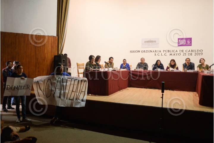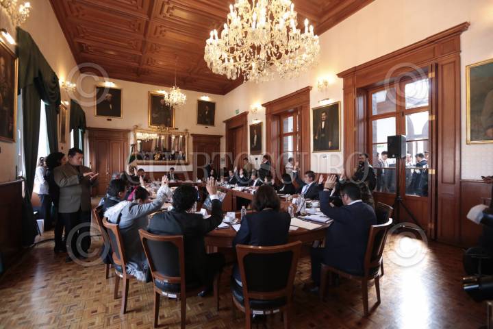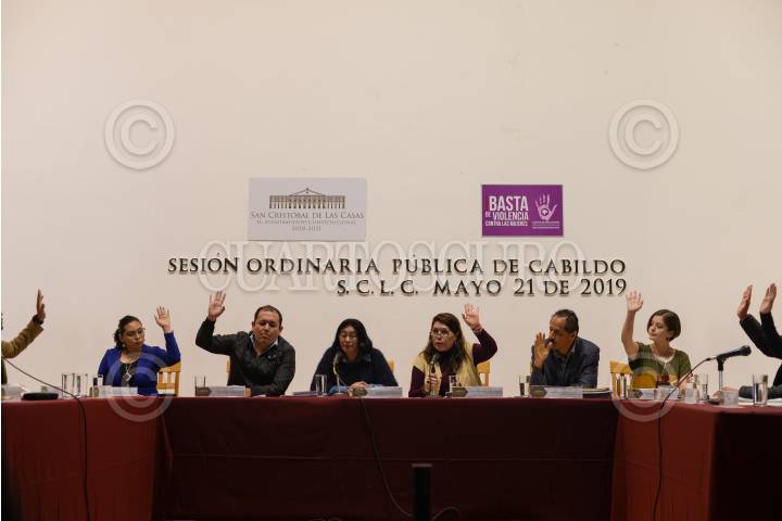 SAN CRISTOBAL DE LAS CASAS, CHIAPAS, 21MAYO2019.- Durante la sesión Ordinaria Pública de Cabildo que se llevó a cabo en el palacio de Bellas Artes, la presidenta municipal Jerónima Toledo, el Síndico Miguel Ángel de los Santos y los nueve regidores municipales, discutieron y llevaron a votación temas como fueron; la creación de la dirección municipal de relaciones Internacionales la cual se aprobó, la integración del comité interno de Contratación de Obra, y el protocolo del funcionamiento del Módulo de atención inmediata para mujeres en situación de riesgo, y la donación de una fracción de un predio al Sindicato Independiente de Trabajadores Municipales. FOTO: ISABEL MATEOS /CUARTOSCURO.COM