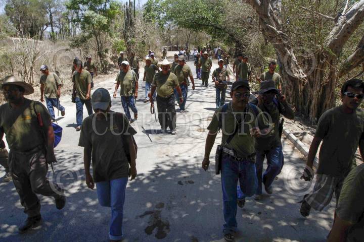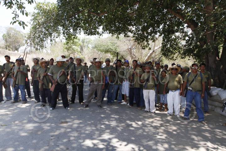 ACAPULCO, GUERRERO06ABRIL2014.- Policías comunitarios de los bienes comunales de Cacahuatepec, reforzaron los puestos de vigilancia tras el enfrentamiento registrado la tarde del viernes pasado cerca de la comunidad de Parotillas, en la zona rural de Acapulco. El día de ayer acudieron al MP del Coloso a interponer una denuncia de hechos por la agresión a balazos sufrida por presuntos simpatizantes de las gavillaras, clausuradas por comuneros en días recientes. FOTO: BERNANDINO HERNÁNDEZ /CUARTOSCURO.COM