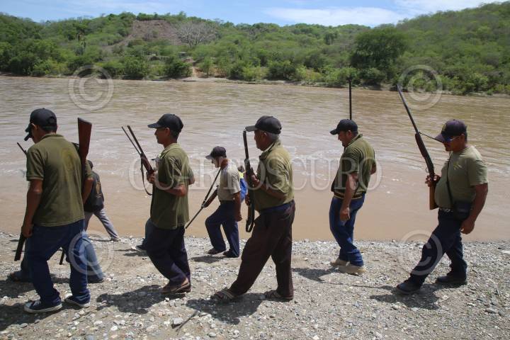 CACAHUATEPEC, GUERRERO, 23JUNIO2019.- Policías de los Bienes Comunales de Cacahuatepec realizan recorridos por el río Papagayo, que abastece de agua al puerto de Acapulco y en donde empresarios gravilleros que no pertenecen a los bienes comunales están sobre explotando la grava y arena del río. Los policías comunitarios denuncian que grupos de la delincuencia organizada están ocupando el río como corredor de drogas y armas, es por eso que se mantienen la vigilancia en la zona. Los comunitarios se pronunciaron también en defensa de los recursos naturales de la región de Cacahuatepec. FOTO: CARLOS ALBERTO CARBAJAL /CUARTOSCURO.COM