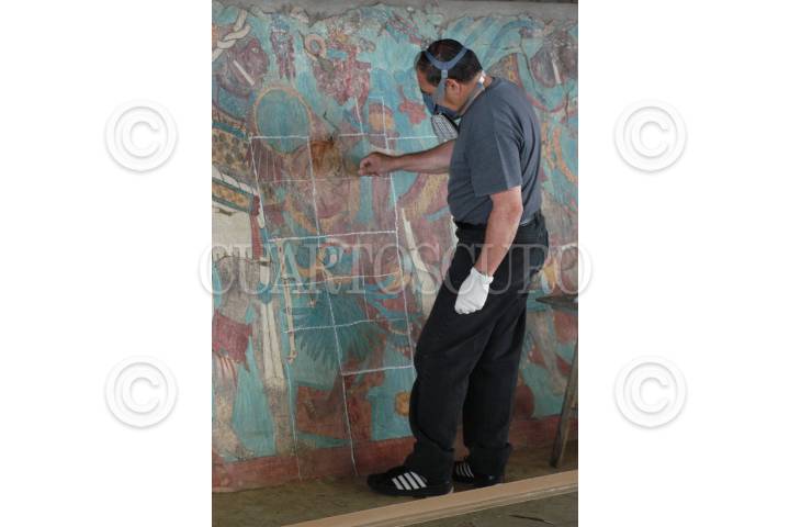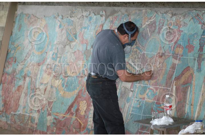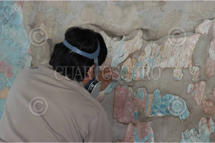 CACAXTLA, TLAXCALA, 04JULIO2012.- Especialistas del INAH desarrollan trabajos de conservación y mantenimiento integral de la zona arqueológica de Cacaxtla. FOTO: INAH/CUARTOSCURO.COM