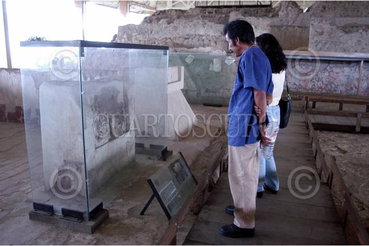 SAN MIGUEL DEL MILAGRO, TLAXCALA 31AGOSTO2005.- Visitantes recorren las instalaciones del museo de la zona arqueológica de Cacaxtla. FOTO: Germàn Romero/CUARTOSCURO.COM