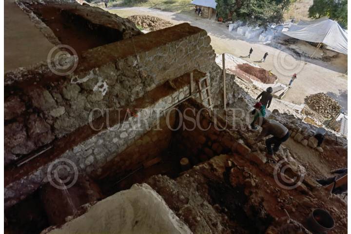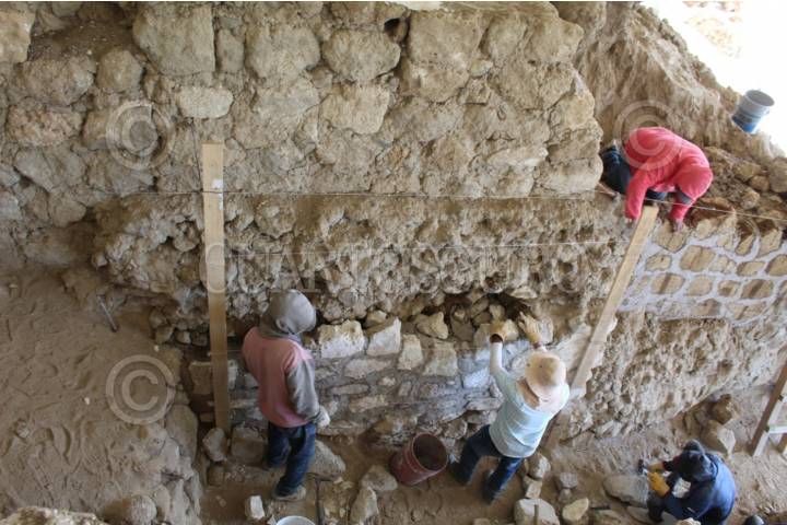 Arqueólogos del INAH se aprestan a concluir la consolidación arquitectónica del Gran Basamento de Cacaxtla.