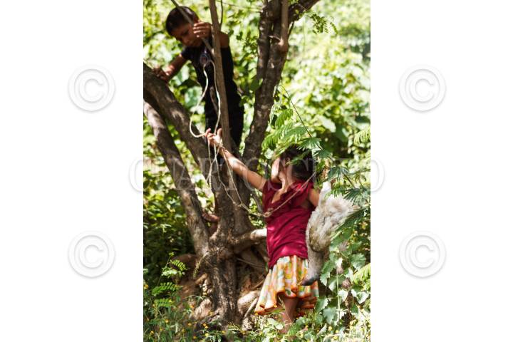 ACAPULCO, GUERRERO, 18SEPTIEMBRE2015.- Un niño y su hermanita realizan una cacería doméstica de una gallina con trampas rudimentarias en el poblado de Garrapatas, para poder comer con mi papá y mi mamá comentaron. FOTO: BERNANDINO HERNÁNDEZ /CUARTOSCURO.COM