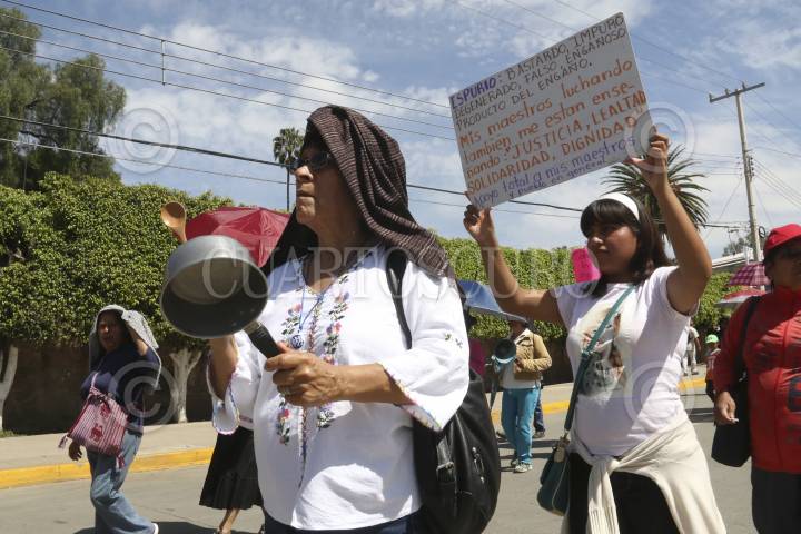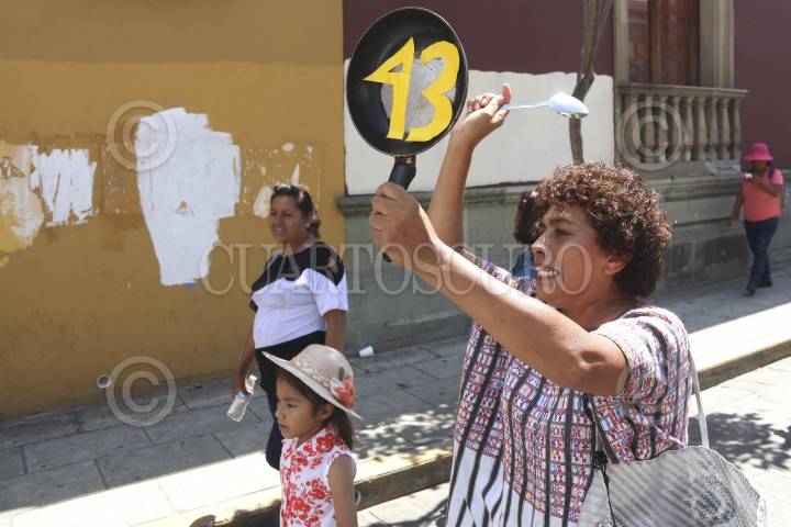 OAXACA, OAXACA, 01AGOSTO2015.- Más de mil mujeres realizaron este sábado la "marcha de las cacerolas" para conmemorar el noveno aniversario de la toma de la CORTV, mismo que ocurrió en el 2006 cuando se desarrollaba el conflicto social entre la APPO y el gobierno de Ulises Ruiz. Las féminas destacaron la participación de las muejeres durante esa época. FOTO: ARTURO PÉREZ ALFONSO /CUARTOSCURO.COM